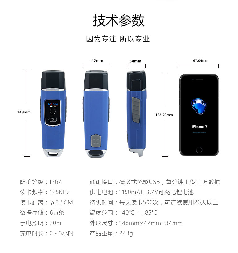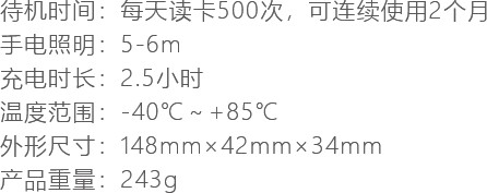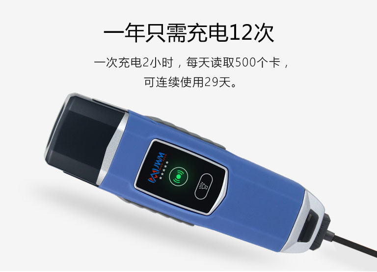 一次充電2小時(shí),每天讀取500個(gè)卡,可連續(xù)使用2個(gè)月